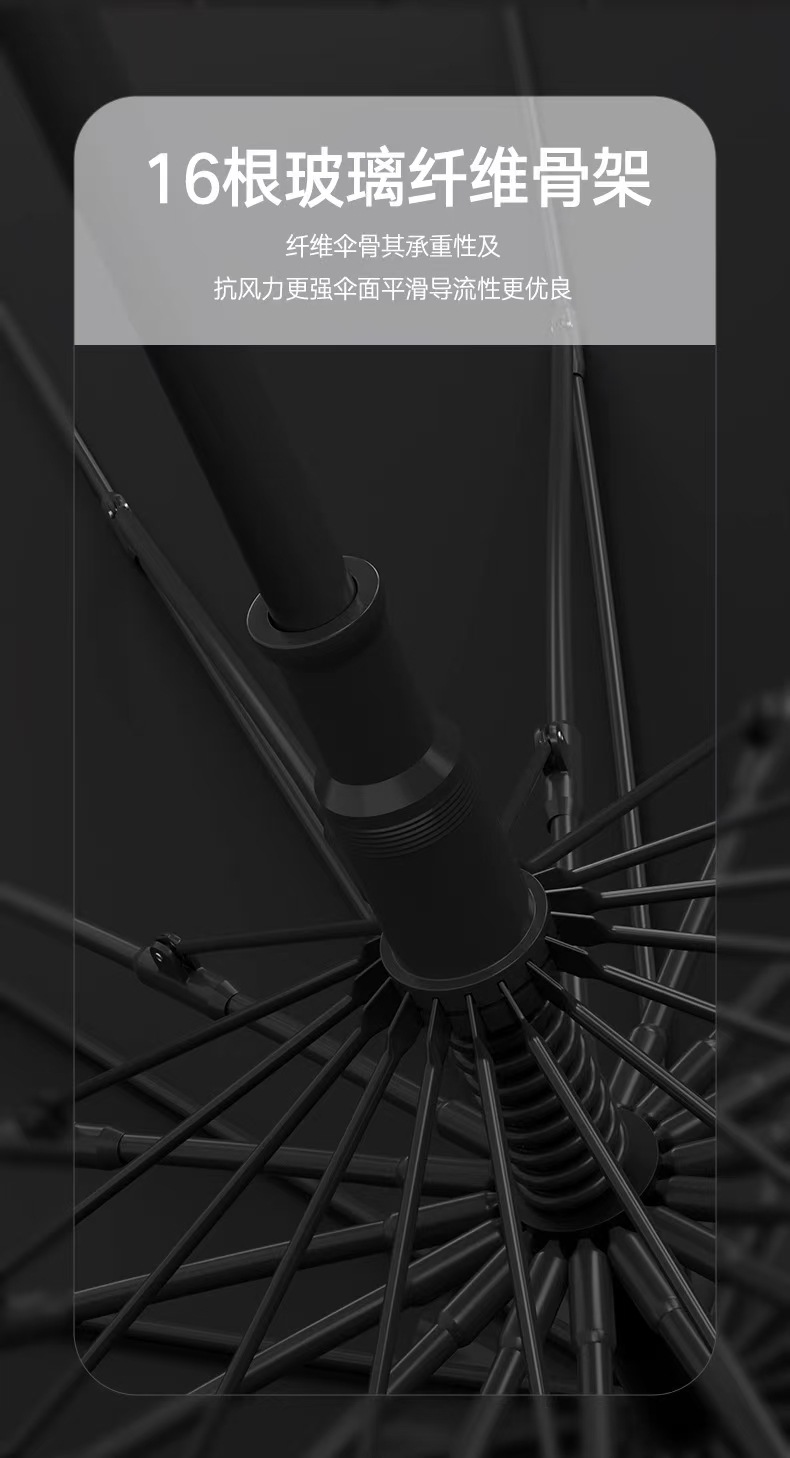 【骨架】:27寸x16kx14mm铁中棒全自动开全纤维伞架