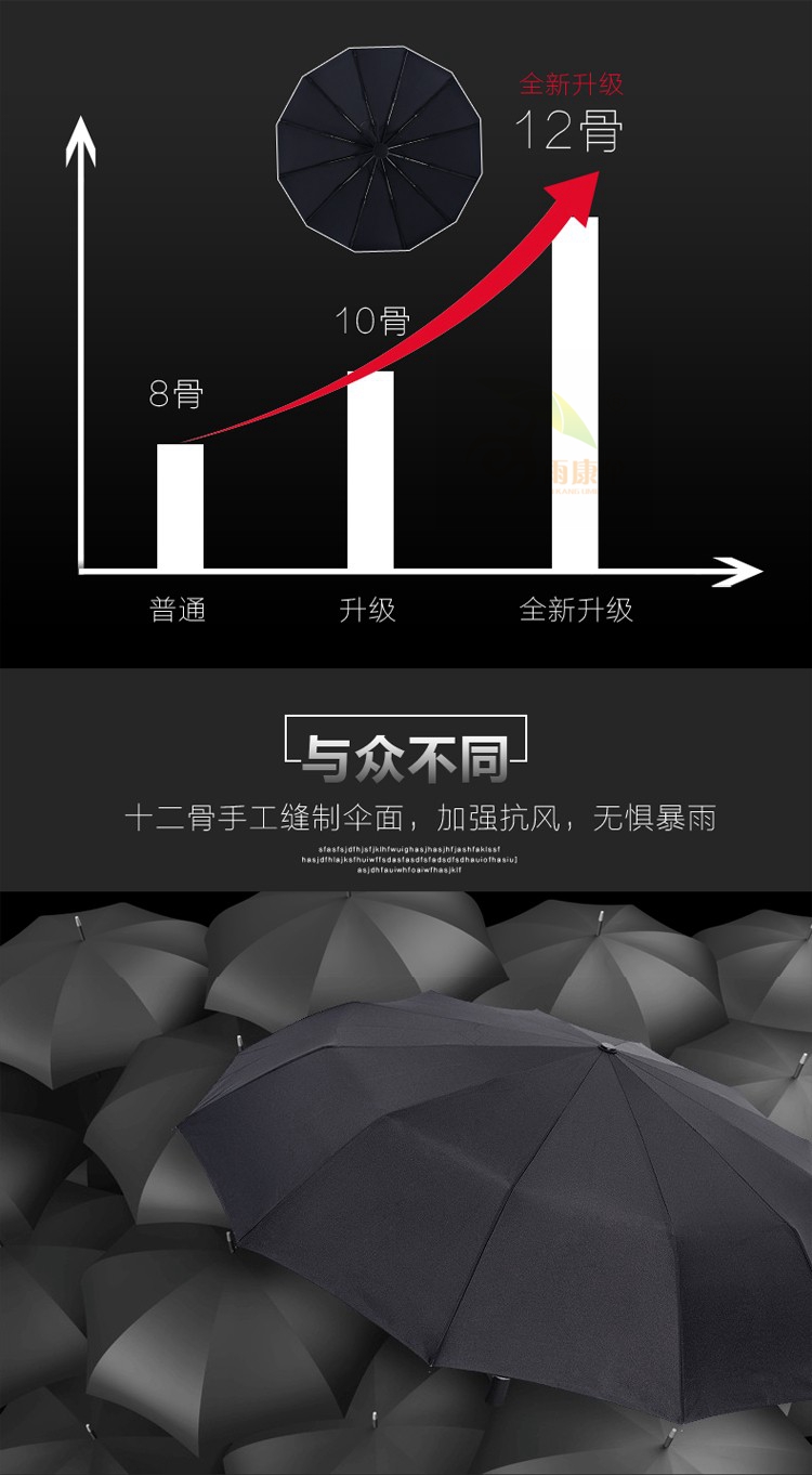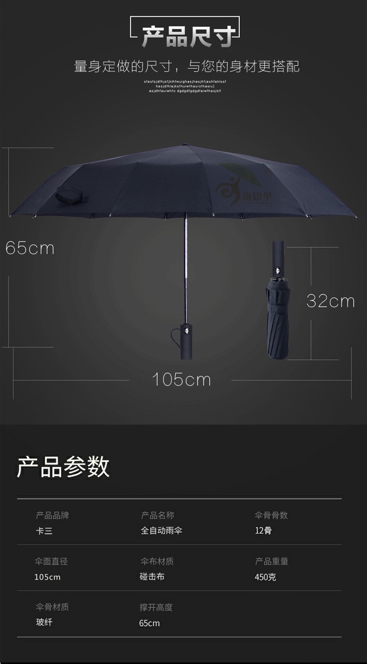【伞头】:全自动黑色长直柄