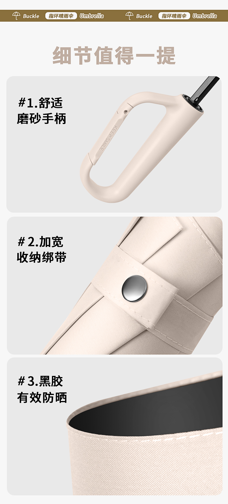 【伞头】:塑胶环扣手柄