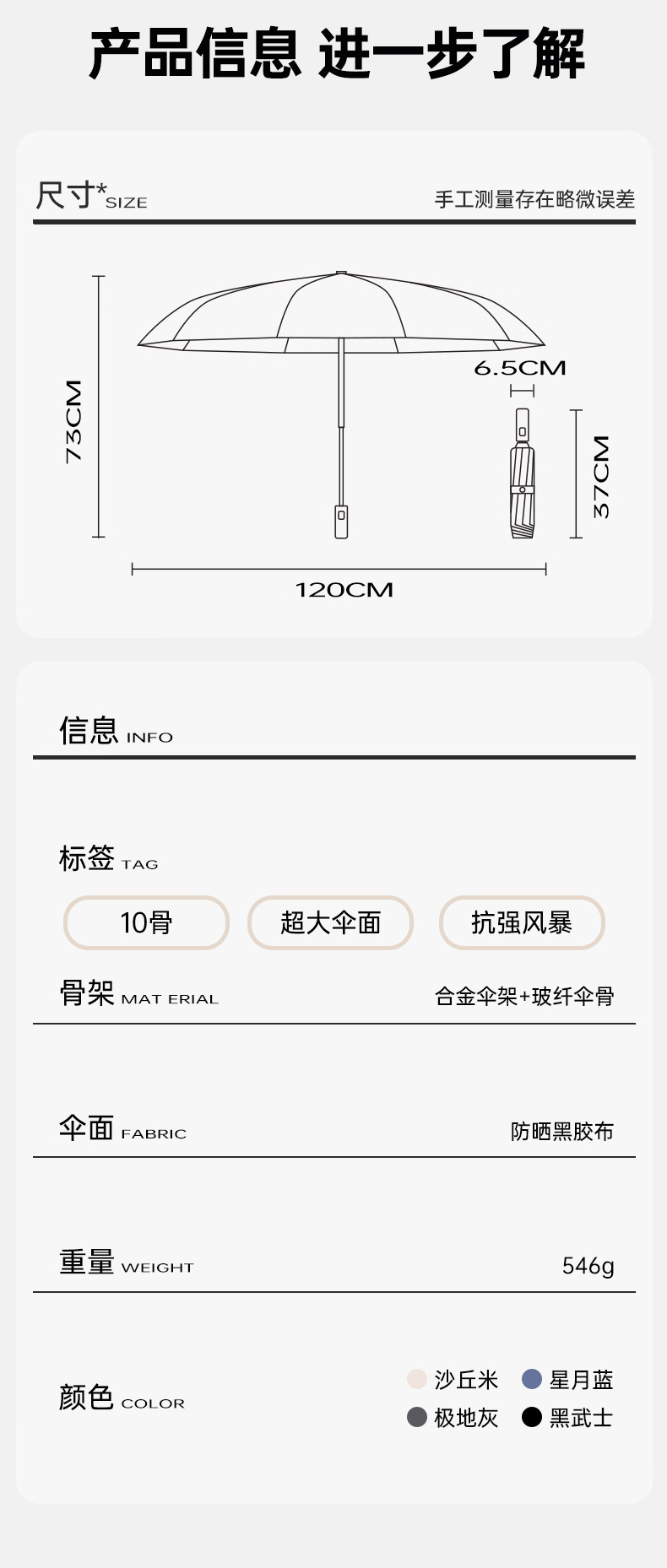 【布料】:210T喷织布黑胶防紫外线