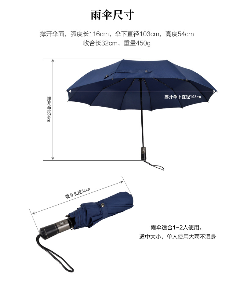 皮质手柄10骨全自动伞 yk-SJZD158